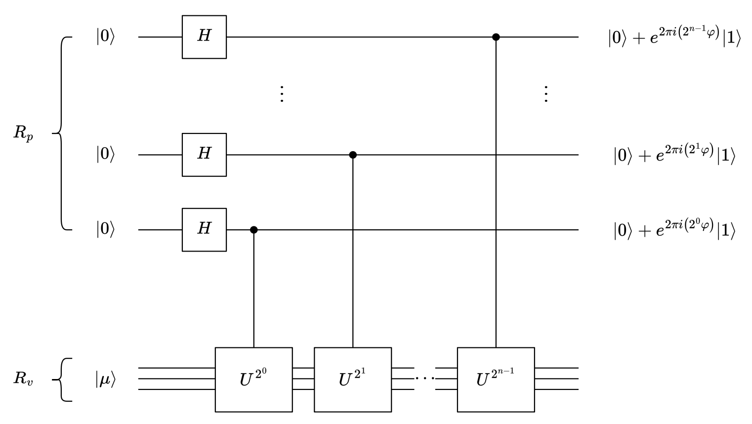 基本目标:对于一个酉算符 \(U\),已知其本征态 \(|\mu\rangle\),对应本征值为 \(e^{2\pi i \varphi}\),估计相位 \(\varphi\) 的值,其中 \(\varphi \in [0, 1)\)。