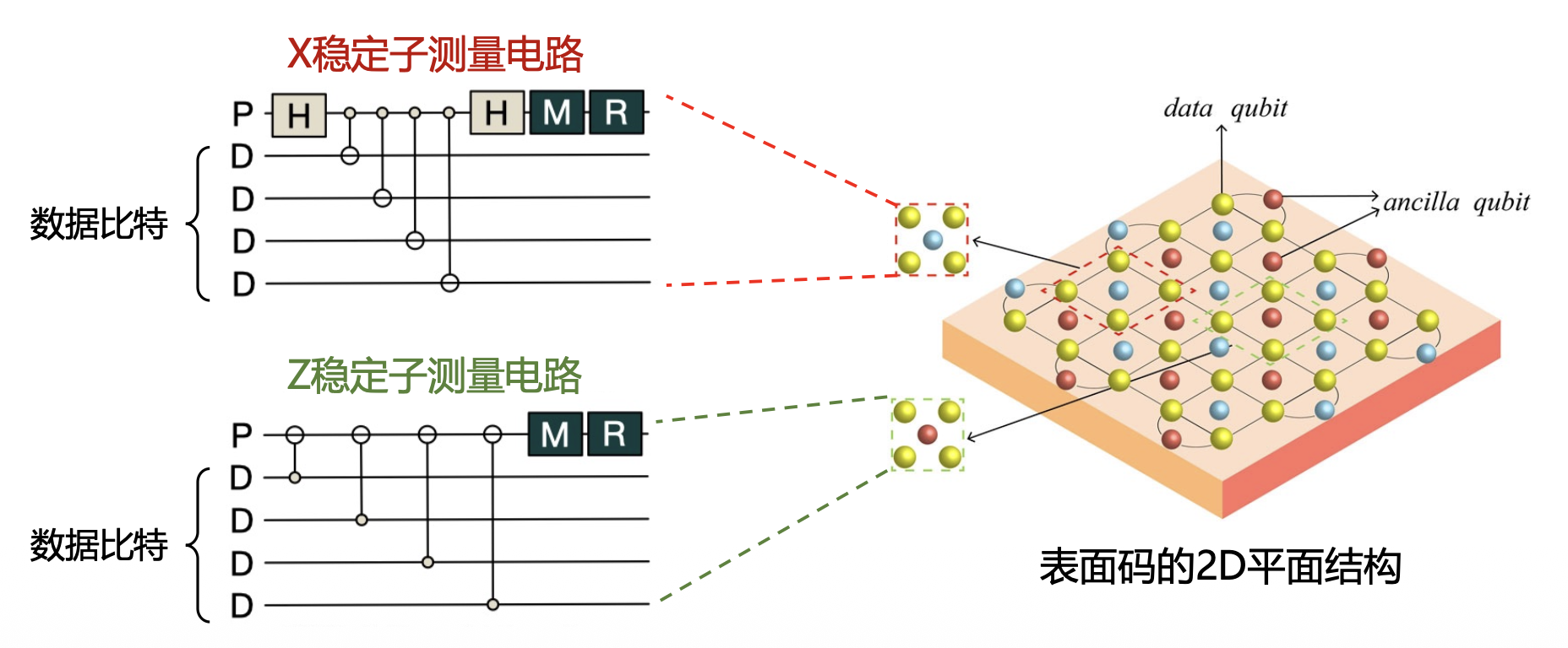 - Z 稳定子:负责检测 X 错误(比特翻转)