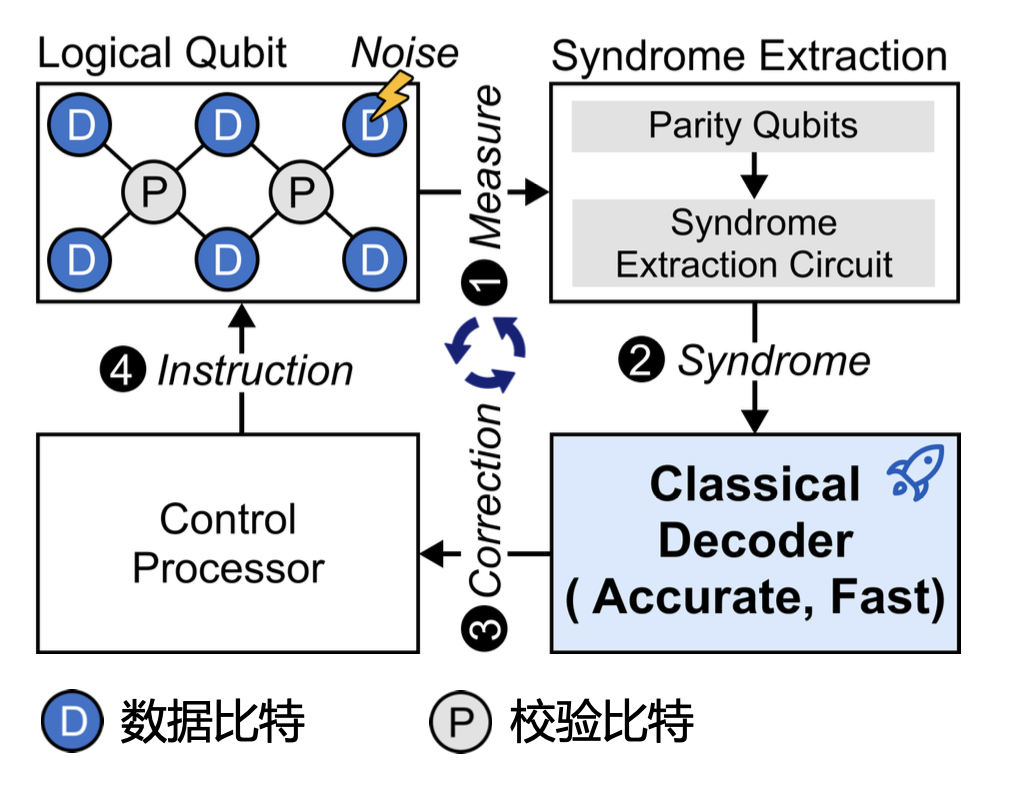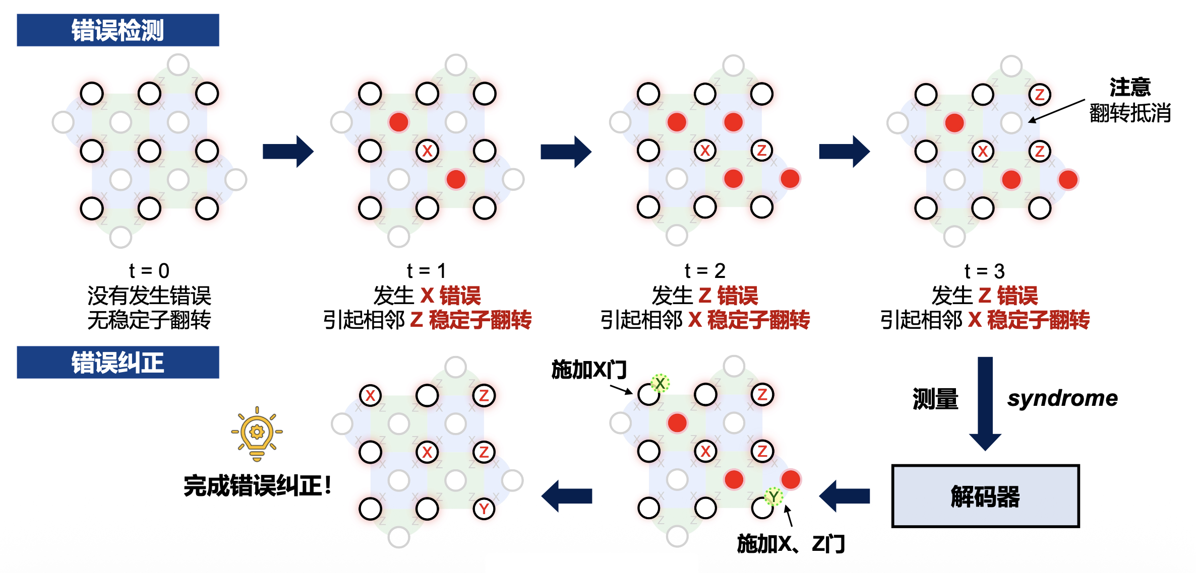 - 解码器执行解码算法,计算出具体的错误纠正操作,发给控制系统