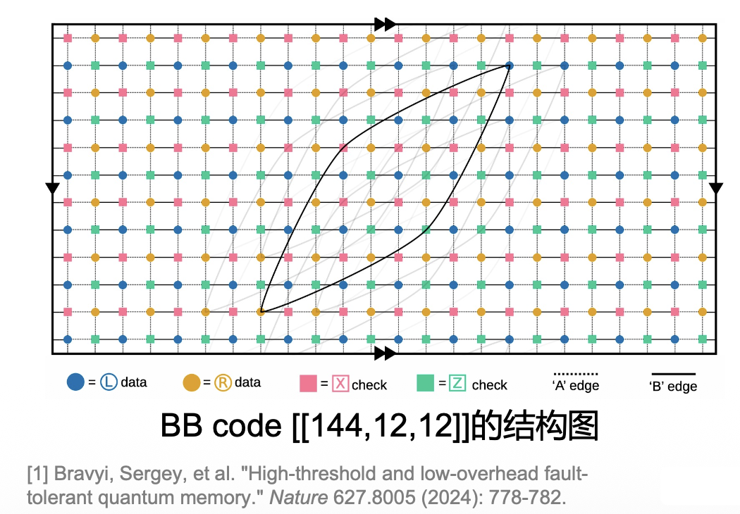 - 例如,BB code [[144,12,12]] 平均只需要 12 个物理比特就可以编码 1 个 d=12 的逻辑比特
