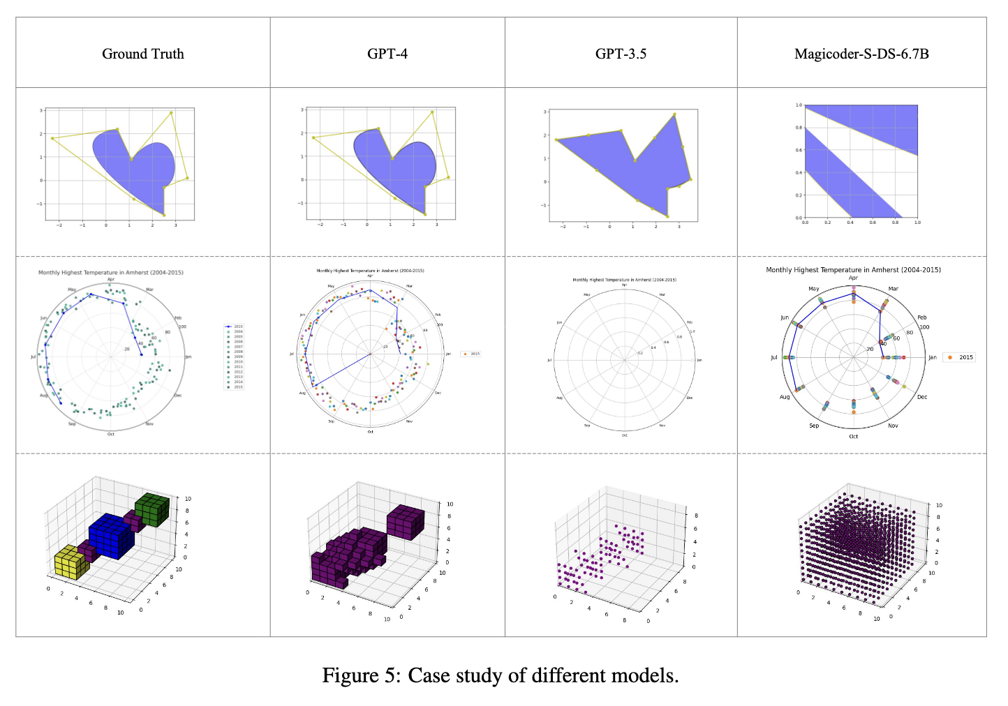 此外,规模较小的 Magicoder 模型在搭载了 MatPlotAgent 后能够超越规模远大于它的 GPT-4(在直接解码下