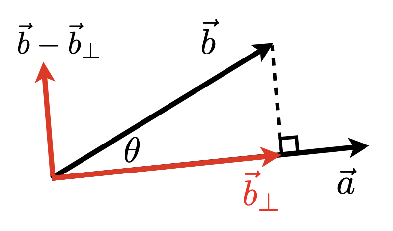 - \(\vec{b}_\perp\):\(\vec{b}\) 在 \(\vec{a}\) 上的投影