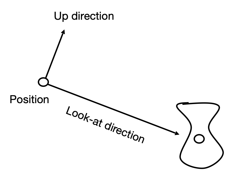- 向上方向 (up direction) \(\hat{t}\)(假定和注视方向垂直)