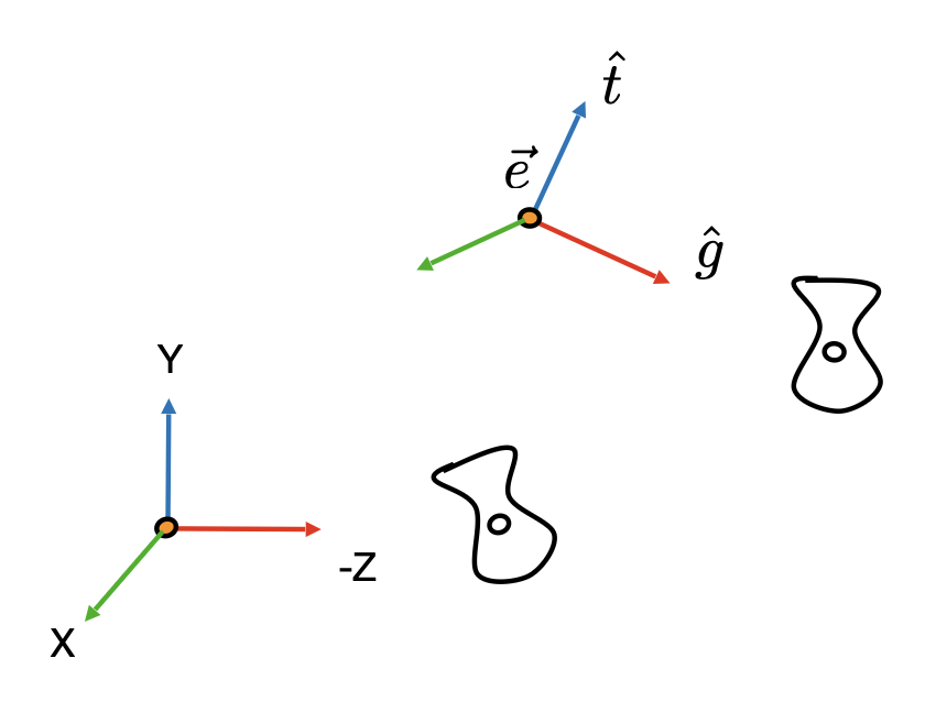 三个旋转:\(\hat{g}\) -> -Z,\(\hat{t}\) -> Y,\((\hat{g} \times \hat{t})\) -> X