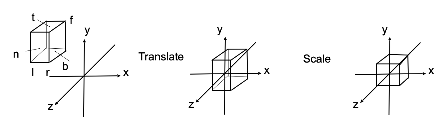 用矩阵表示为:\(M_{persp} = M_{ortho} M_{persp \rightarrow ortho}\)