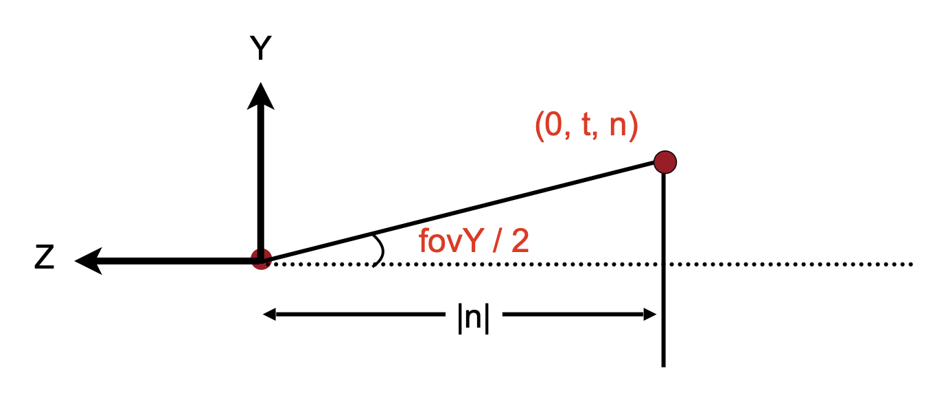 - \(\tan \dfrac{\text{fovY}}{2} = \dfrac{t}{|n|}\)