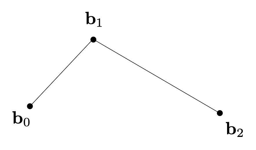 - 对于三次贝塞尔曲线,\(\bm{b}'(0) = 3(\bm{b}_1 - \bm{b}_0), \bm{b}'(1) = 3(\bm{b}_3 - \bm{b}_2)\)