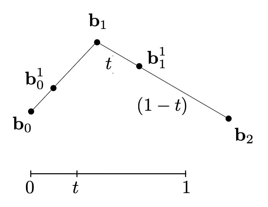递归地重复上述操作,直至只剩下一条线段,此时就确定 t 对应在曲线上的位置