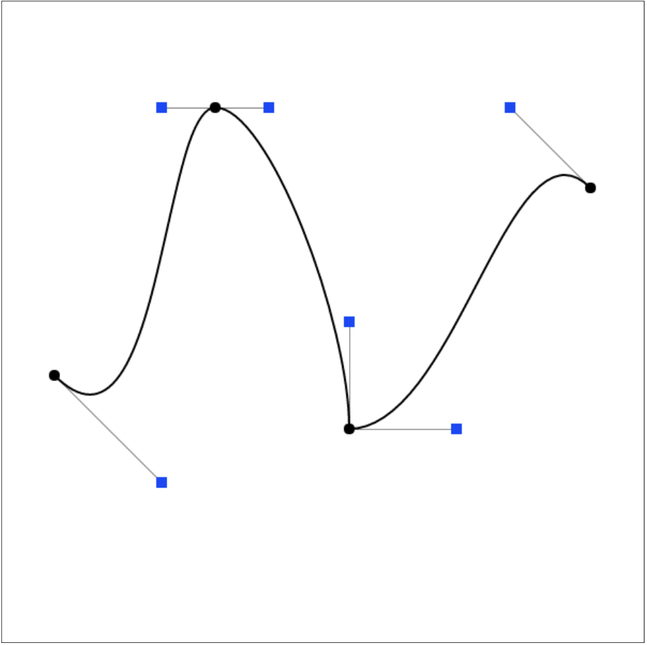 贝塞尔曲线(Bézier curves) 由一系列控制点定义。下面展示的是一段三次贝塞尔曲线: