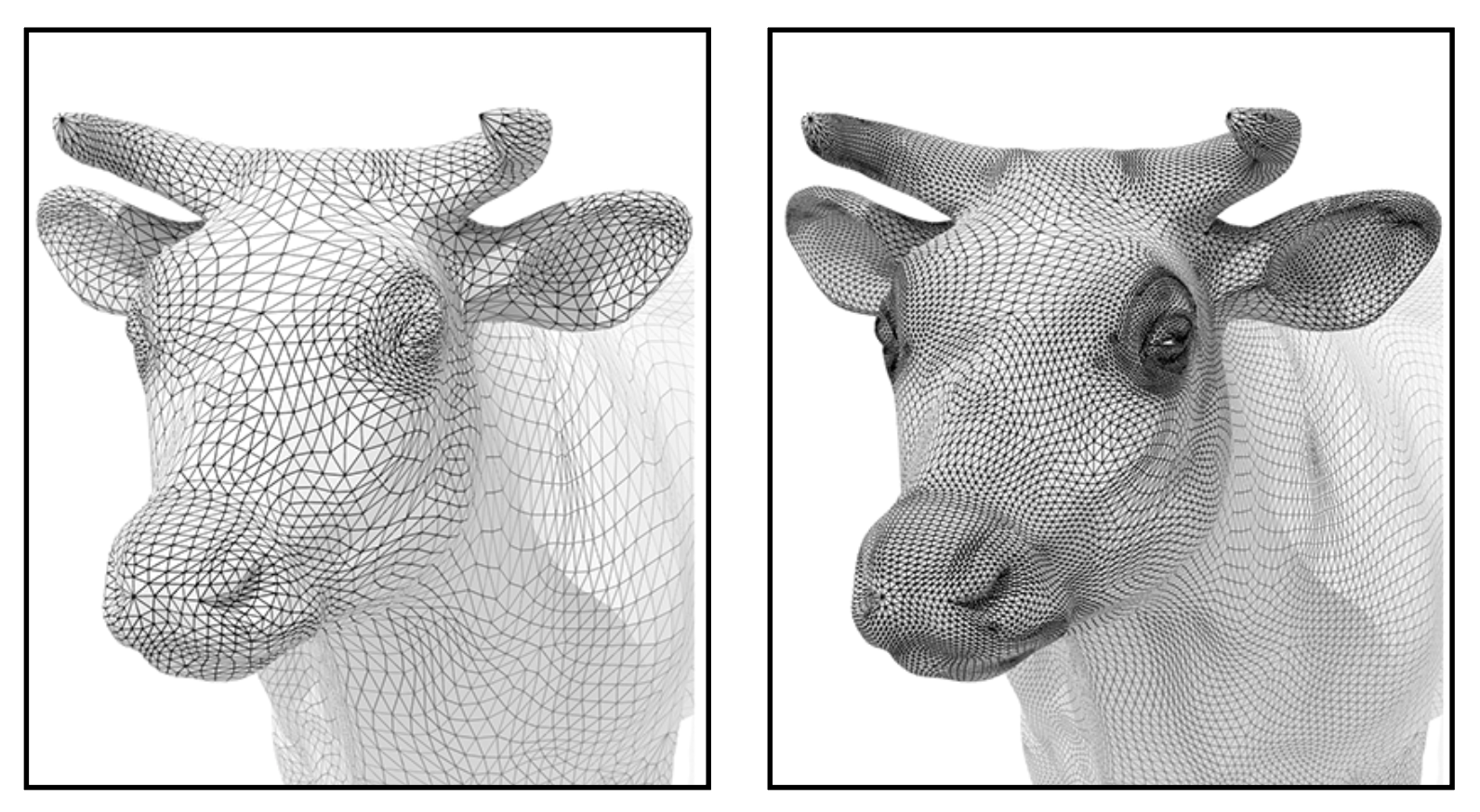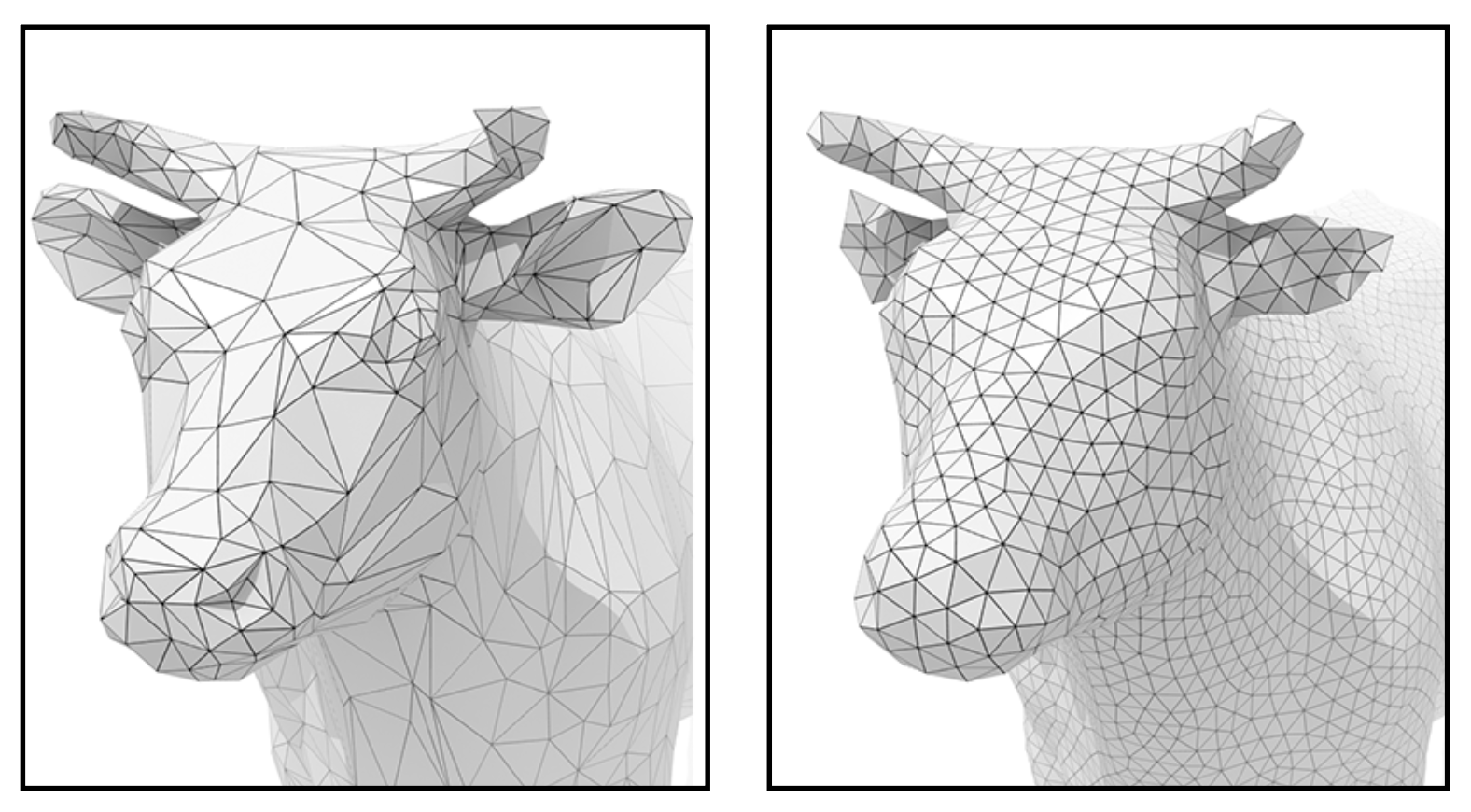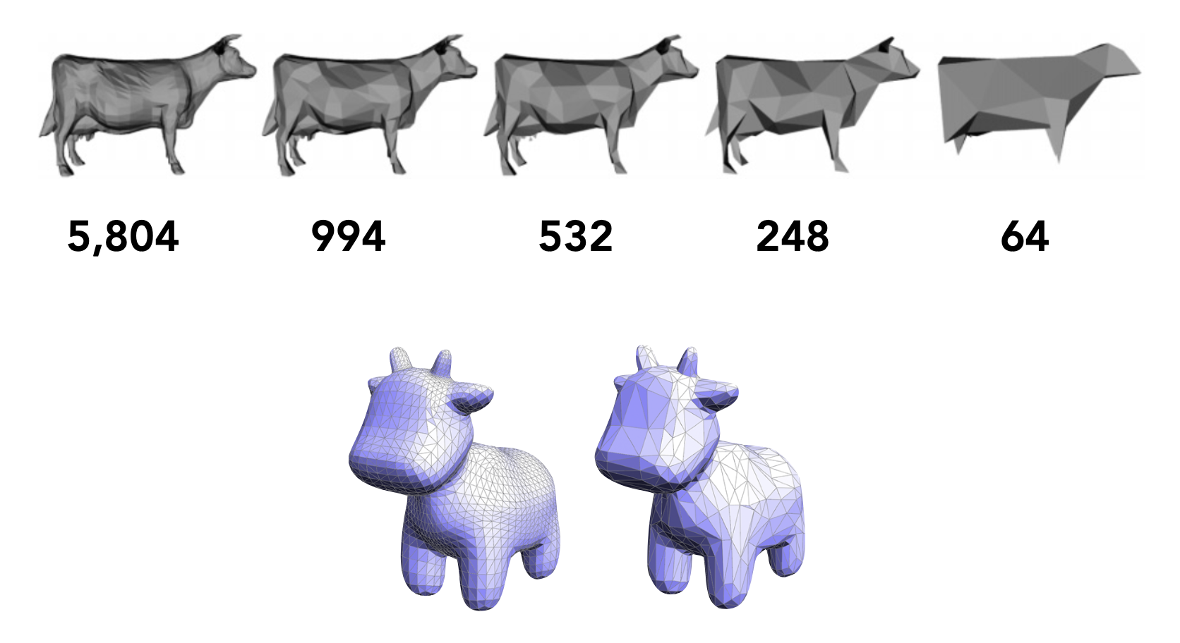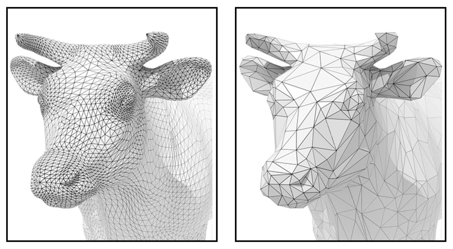 ) :降低分辨率,但保留形状 / 外观- 牛耳、牛角都有截断,可见简化后模型质量下降