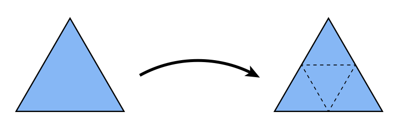 将一个三角形划分为四个小三角形(此时会产生新的顶点)