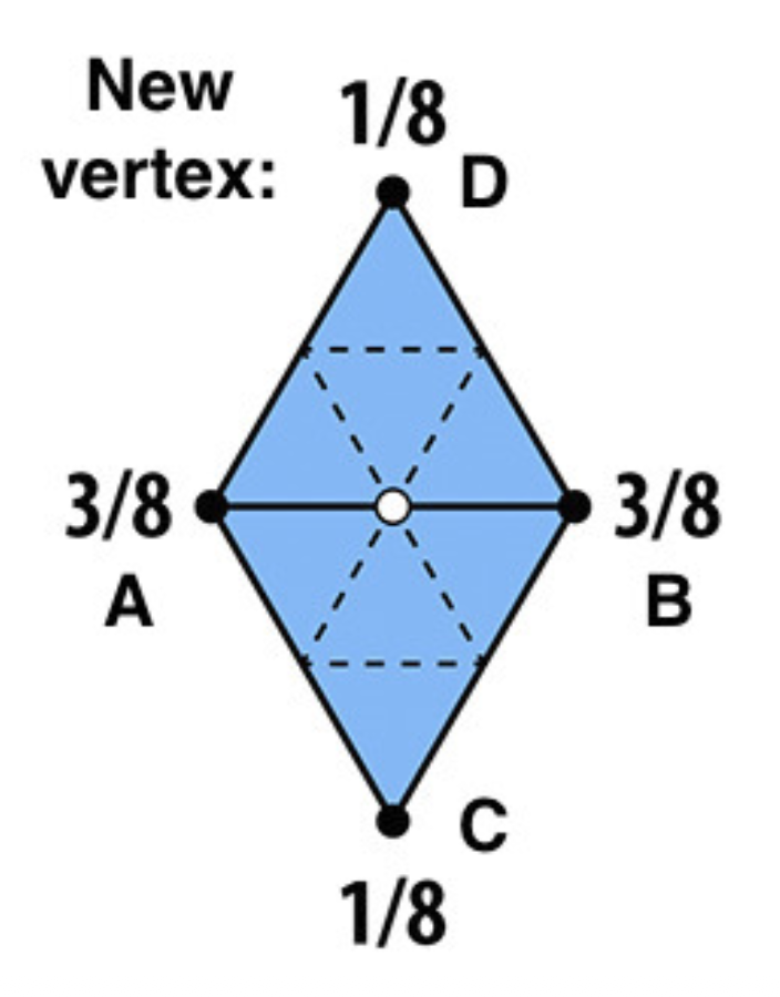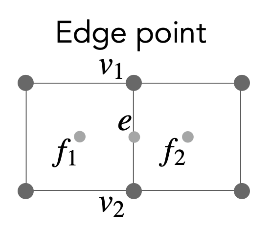 边上的点:\(e = \dfrac{v_1 + v_2 + f_1 + f_2}{4}\)