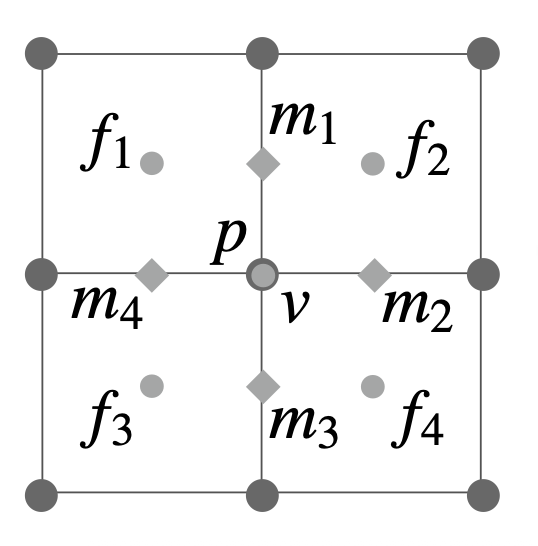 顶点上的点:\(v = \dfrac{f_1 + f_2 + f_3 + f_4 + 2(m_1 + m_2 + m_3 + m_4) + 4p}{16}\)