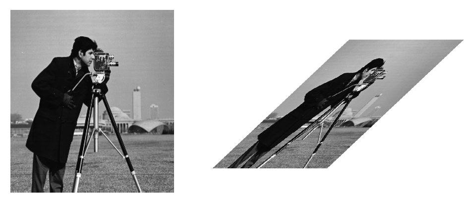 • 简单变换(simple transformation):变换过程(各个像素变换前后的位置)以及变换参数可知时的变换,如图像的平移、镜像、转置、旋转、缩放、错切变换等