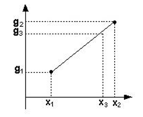 \[ g_3 = \dfrac{g_2 - g_1}{x_2 - x_1}(x_3 - x_1) + g_1 \]
