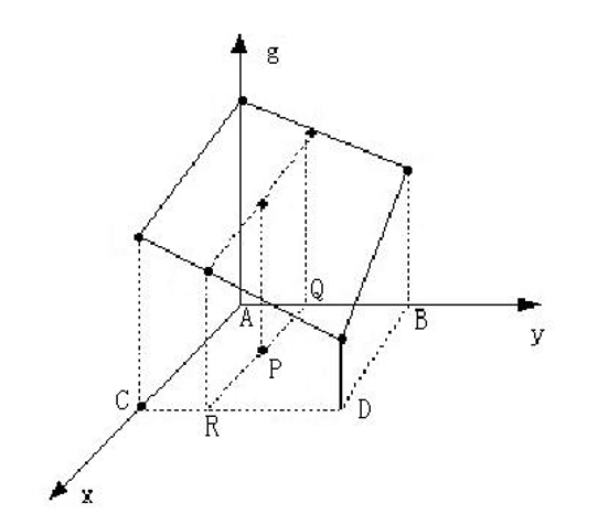 • 二维(双线性插值(bilinear interpolation):已知图像的正方形网格上四个点 \(A\)\(B\)\(C\)\(D\) 的灰度,求 \(P\) 点的灰度。