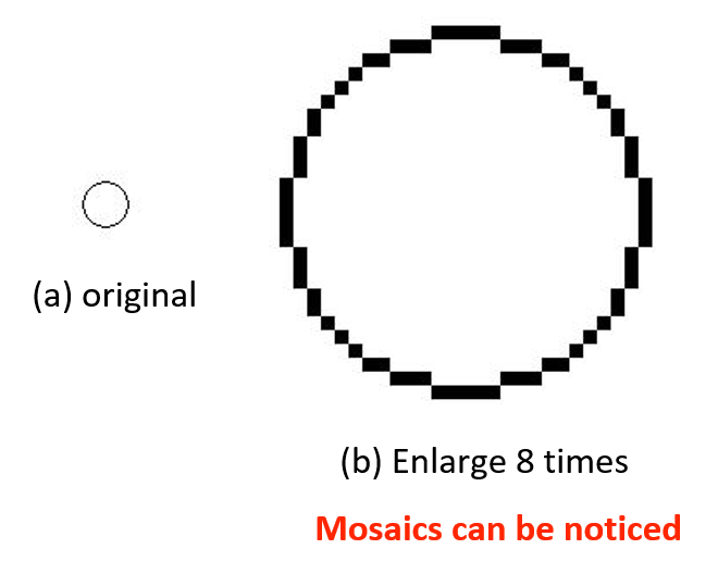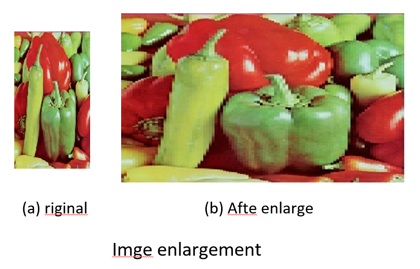 • 放大(enlarge):新图像出现空行和空列,可采用插值的方法加以填补,但存在“马赛克”现象