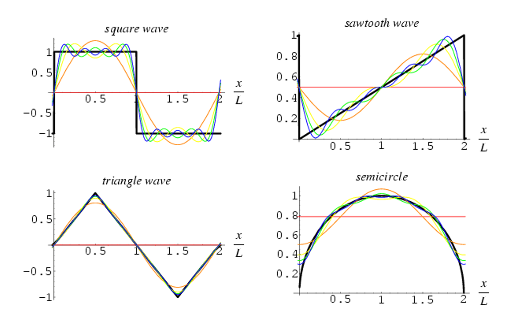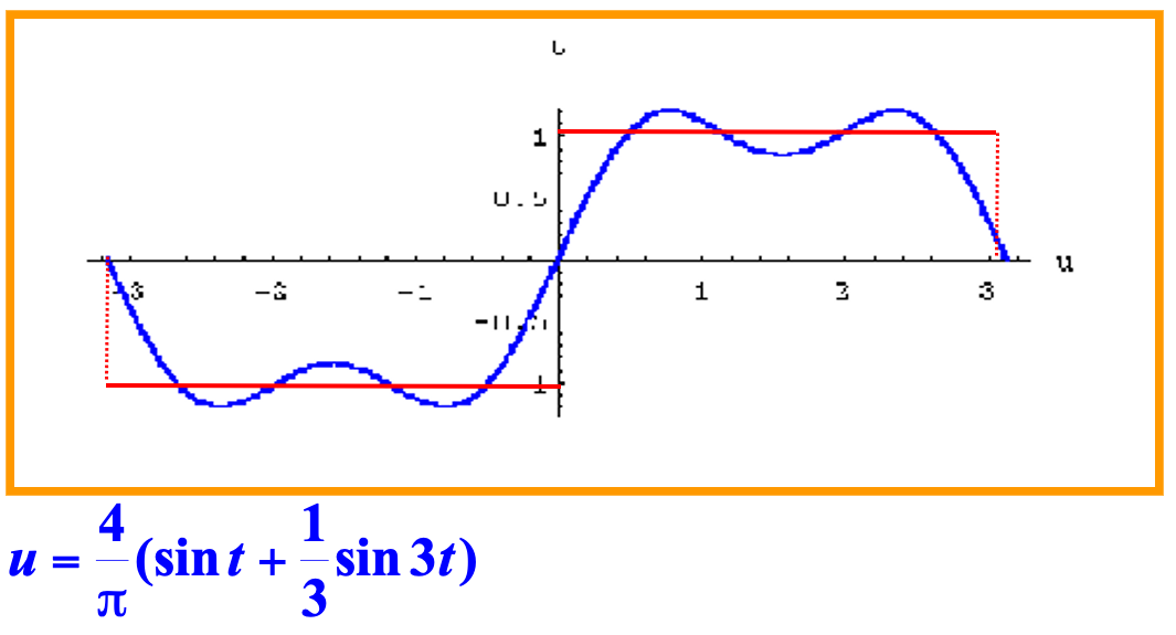 18 世纪中叶,法国数学家傅里叶在研究热传导问题时,找到了三角函数的无限线性组合表示有限区间上的一般函数的方法,即把函数展开成三角级数: