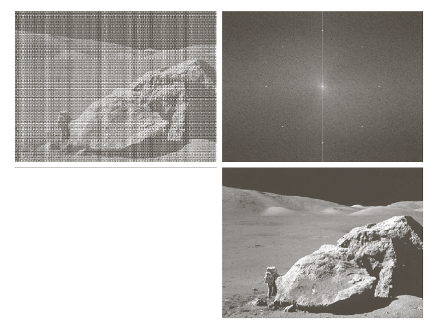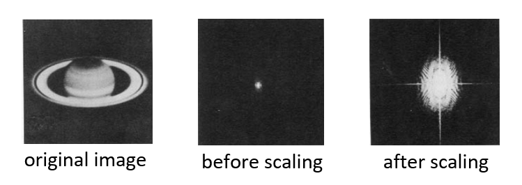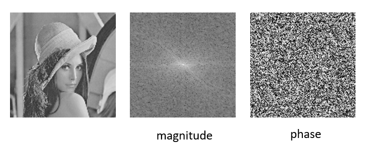 - 可视化 DFT:一般将 \(|F(u, v)|\) 的值进行可视化,但是一般情况下它的动态范围过大,因此需要进行适当的放缩(利用公式 \(D(u, v) = c \log(1 + |F(u, v)|)\),其中 \(c\) 为常数