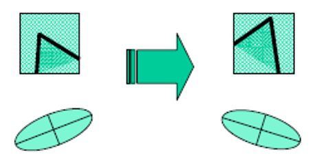 - 旋转椭圆时,椭圆的形状(即特征值)保持不变。因此在图像的旋转过程中,角点的响应值 \(R\) 保持不变