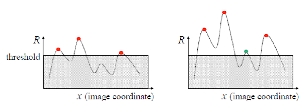 将这些像素点(它们的响应值 \(R_{-}\) 是局部极大的)作为特征点