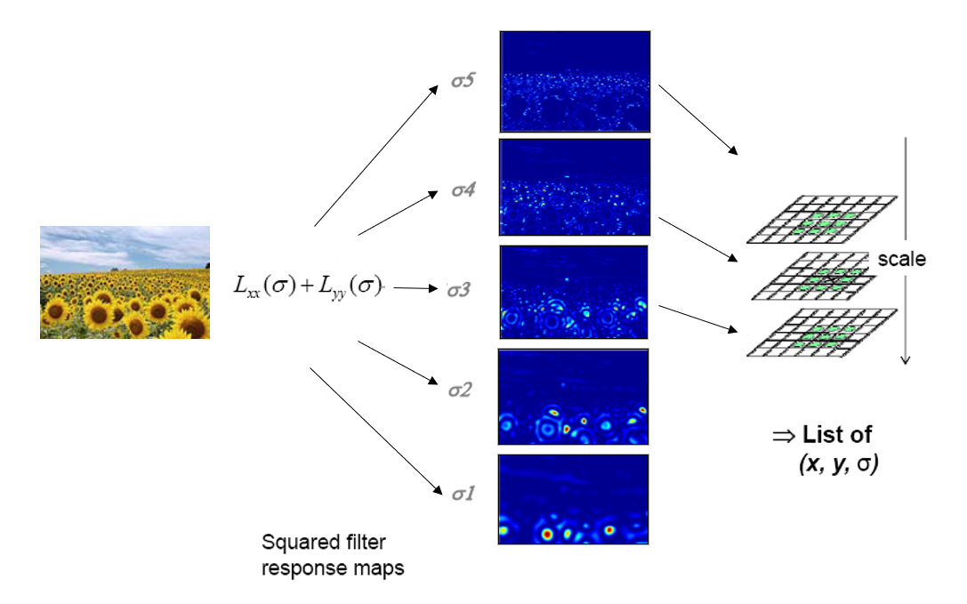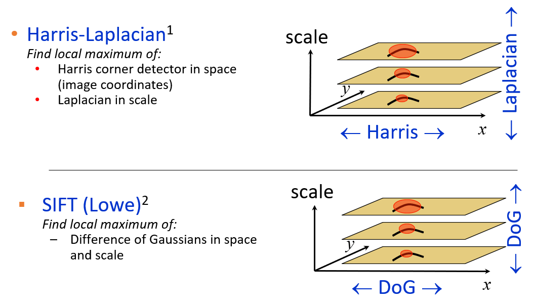 - 共同的方法:取函数的局部极大值,因为它可以作为图像缩放过程中的不变量