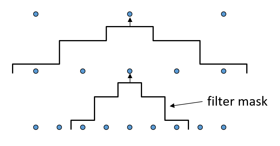 - 降采样:将平滑后的图像进行降采样(通常是减小尺寸为原图像的一半)以生成下一层 \(G_{i+1}\)