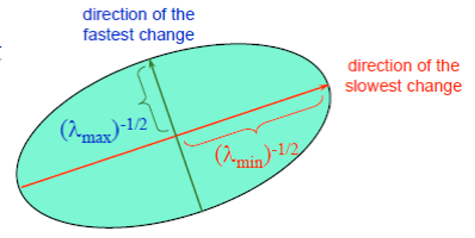 最后得到的矩阵 \(H\) 相当有用:我们可以利用它的特征值(eigenvalue) 和特征向量(eigenvector) 来寻找某个窗口移动范围(一个圆圈)内误差的最值。