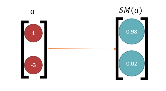 • 但我们希望能够得到真正的概率(在 0-1 之间,且这些概率之和为 1。解决方案是使用 softmax 函数:\(a(x)_i = \dfrac{e^{x_i}}{\sum_j e^{x_j}}\),效果如下所示: