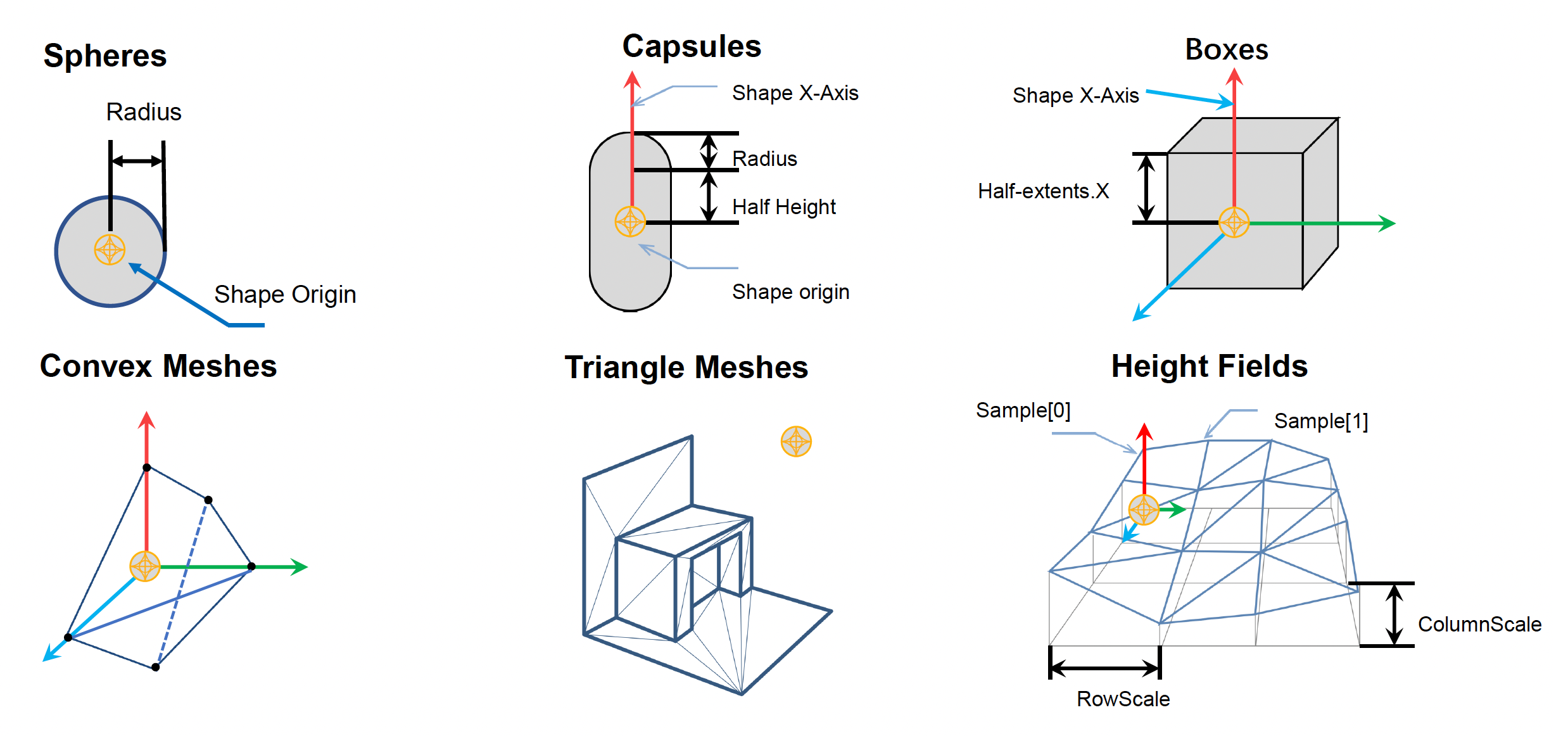 参与者的形状各异,需要根据实际情况选择合适的形状,否则会影响到游戏性能,甚至产生各种奇怪的 bug。常见的形状有: