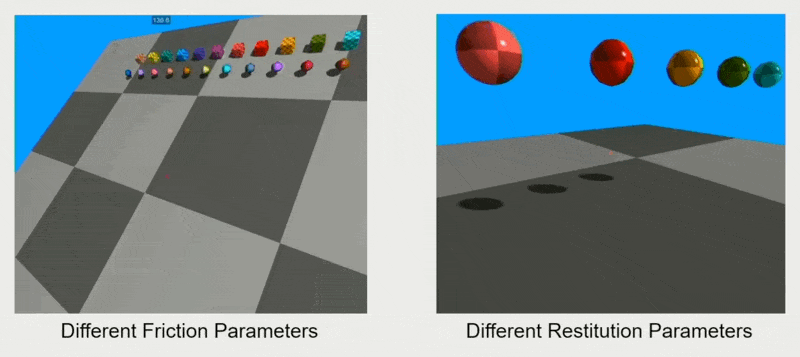 - 碰撞约束包括非穿透 (non-penetration)、弹性 (restitution) 和摩擦力 (friction)