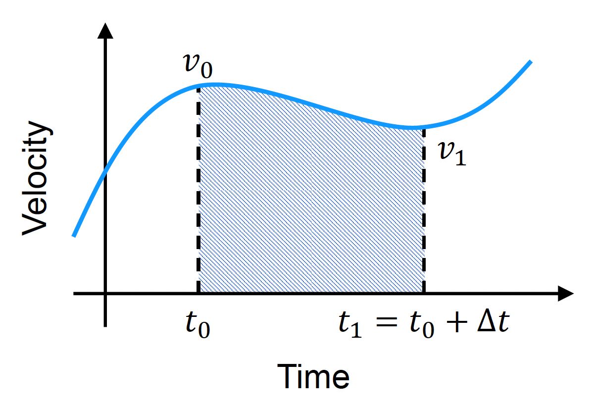 需要沿时间做积分:\(\vec{x}(t_1) = \vec{x}(t_0) + \int_{t_0}^{t_1} \vec{v}(t) dt\)