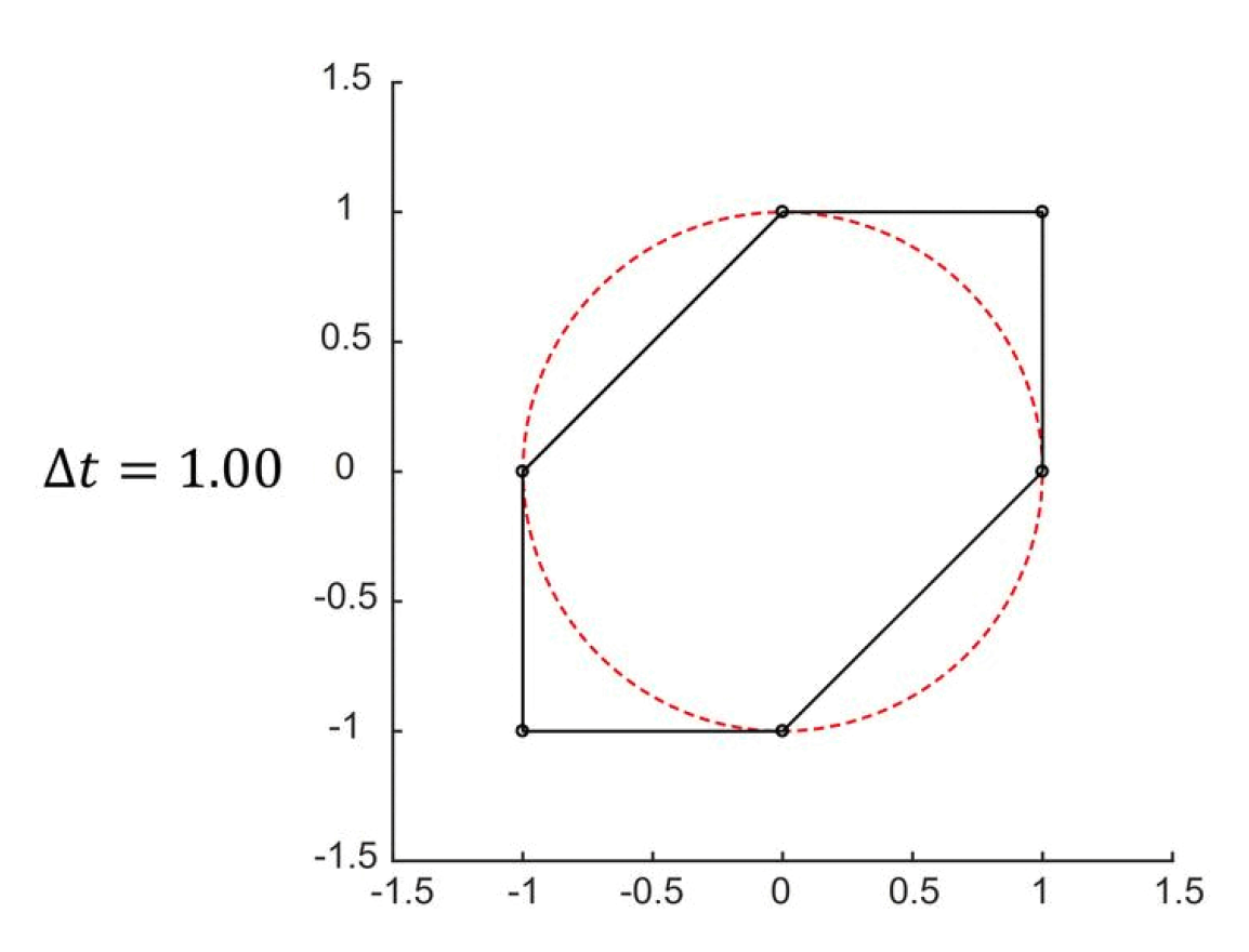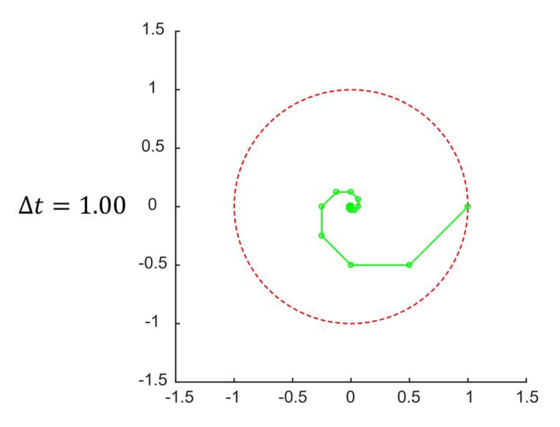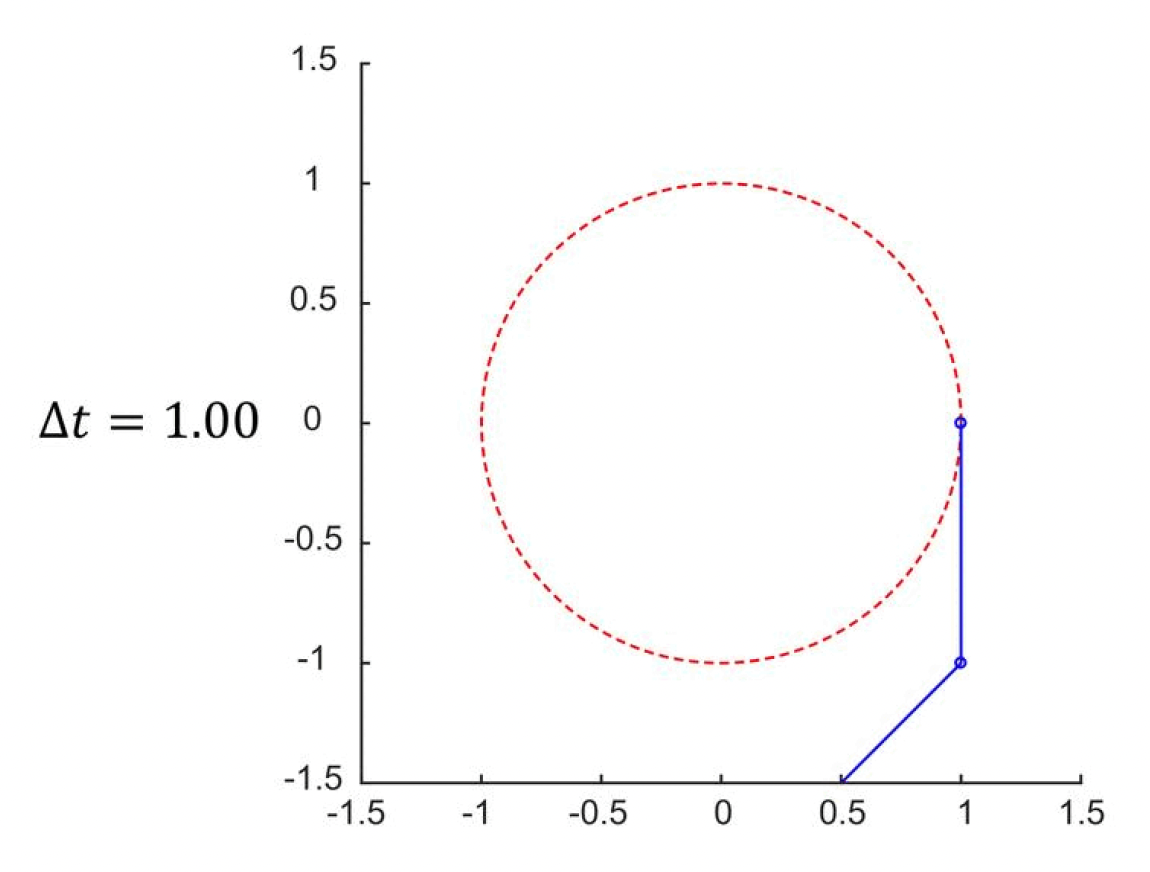 - 但它还是有一点小问题的:在简谐运动、圆周运动等涉及到三角函数的运动中,通过该方法积分得到的周期会比实际周期略长一些,因而产生一个小的相位差