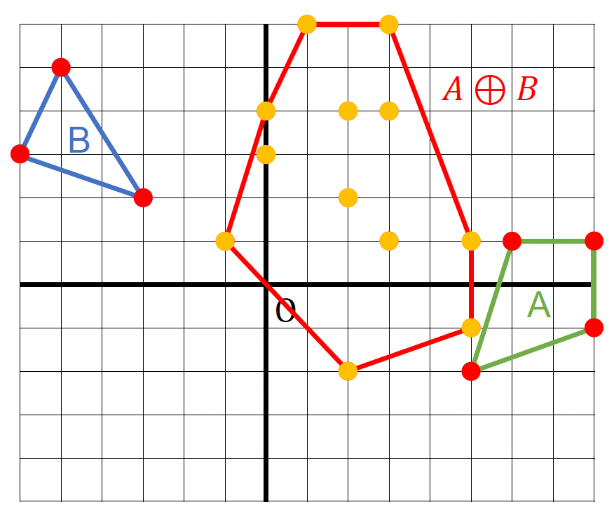 - 定理:若 \(A, B\) 是凸多边形,那么 \(A \oplus B\) 也是凸多边形