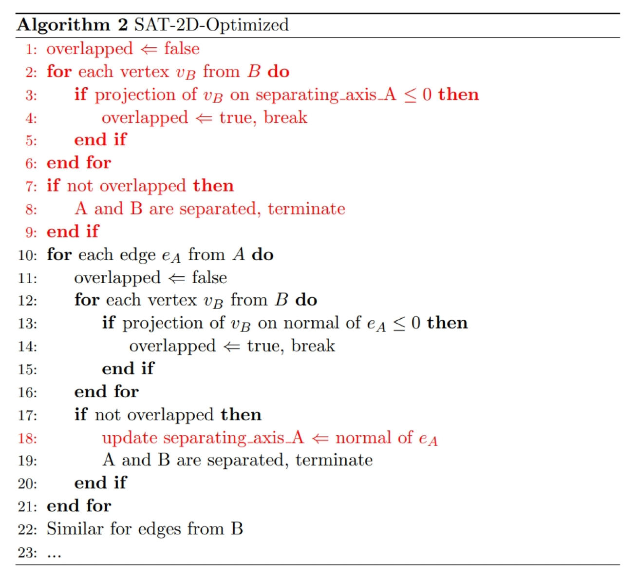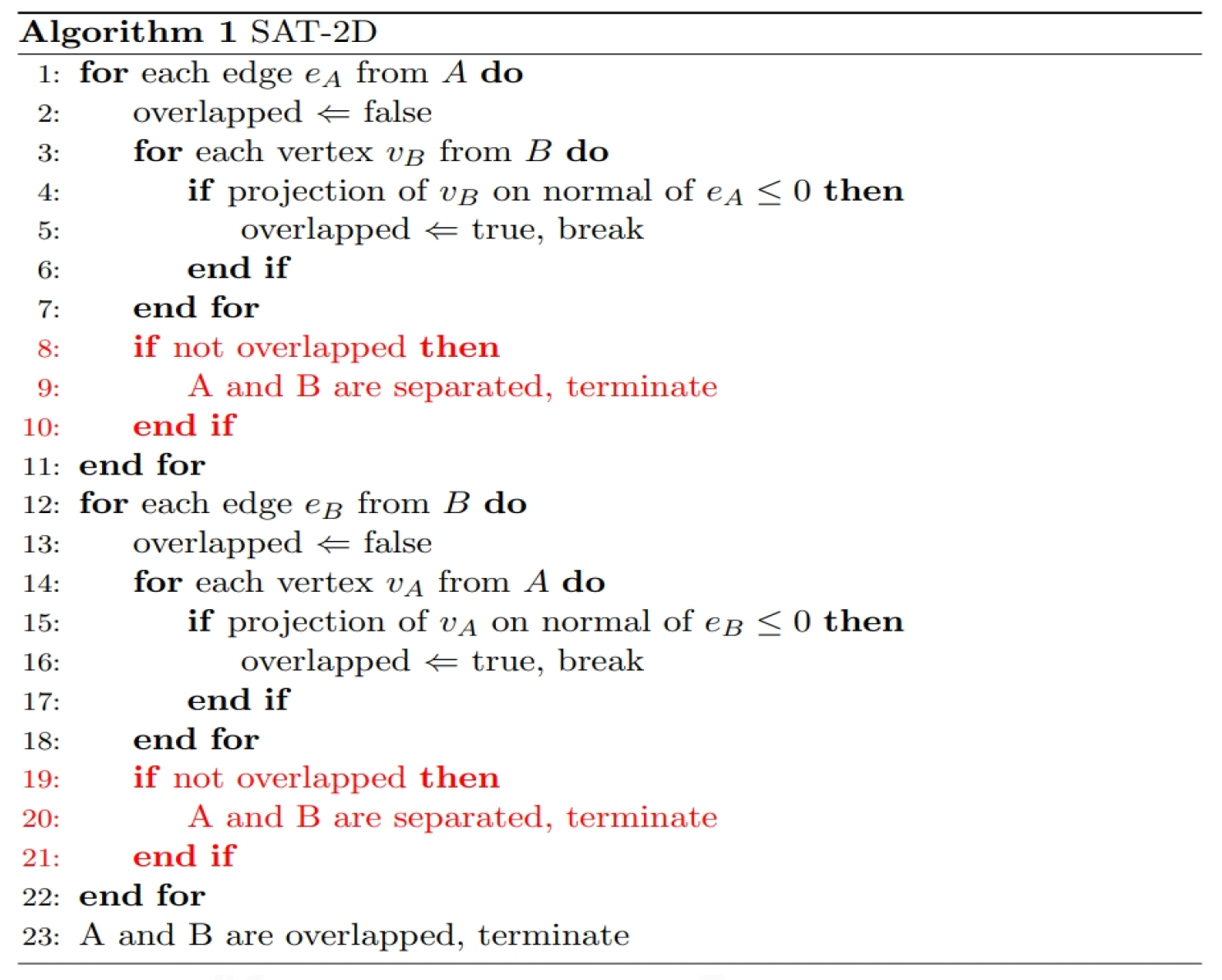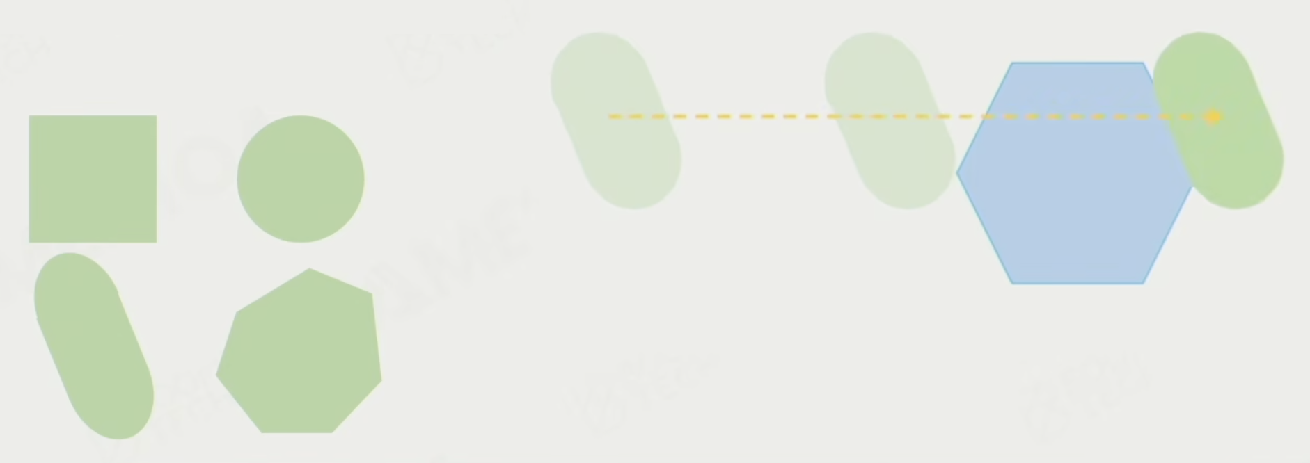 另一种理解:在 2D 情况下,一定能找到一条轴,使得两个多边形的顶点在这条轴上的投影是分离的(两个投影顶点集合没有交集)