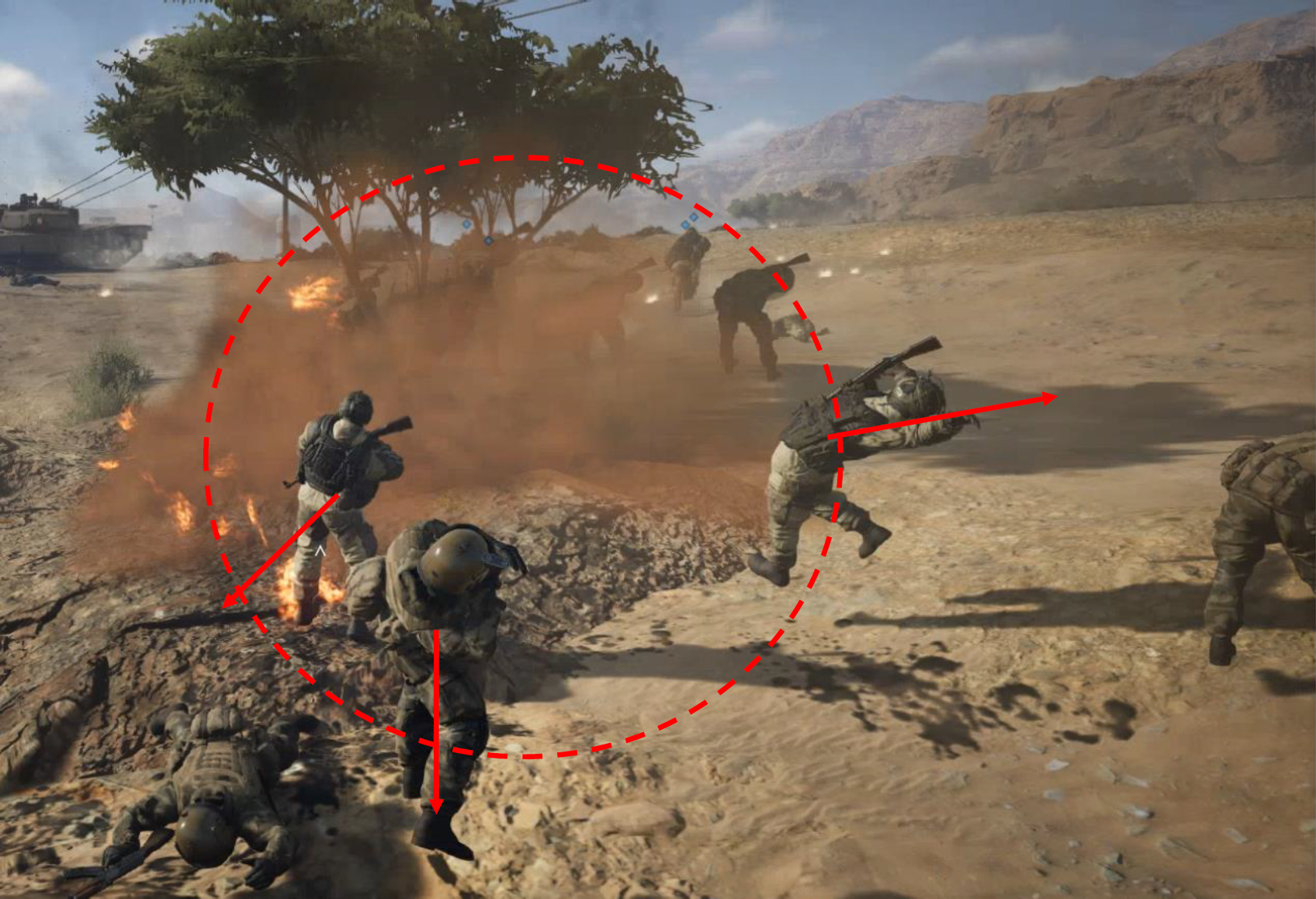 还可以通过施加冲量(impulse) 改变参与者的加速度,比如车辆冲撞、爆炸等