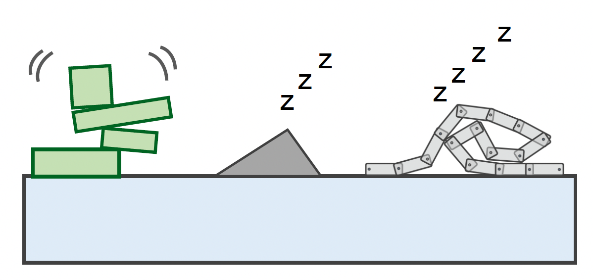 - 在物理系统中通常假设每个参与者是质量均匀的,这样的物体会有好几个平衡点;而质量不均匀的物体只有一个平衡点(比如不倒翁)