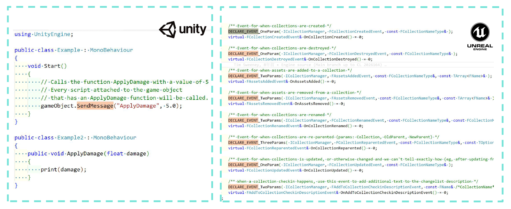 - 而 Unreal 做得就比较复杂些——用 C++ 源码去处理比较复杂的反射机制