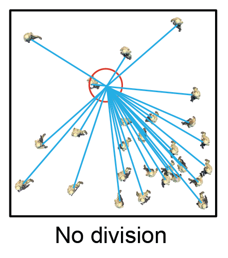 简单的空间分段:将场景划分为均匀的格子,事件发生时只需向邻近格子内的对象发消息即可