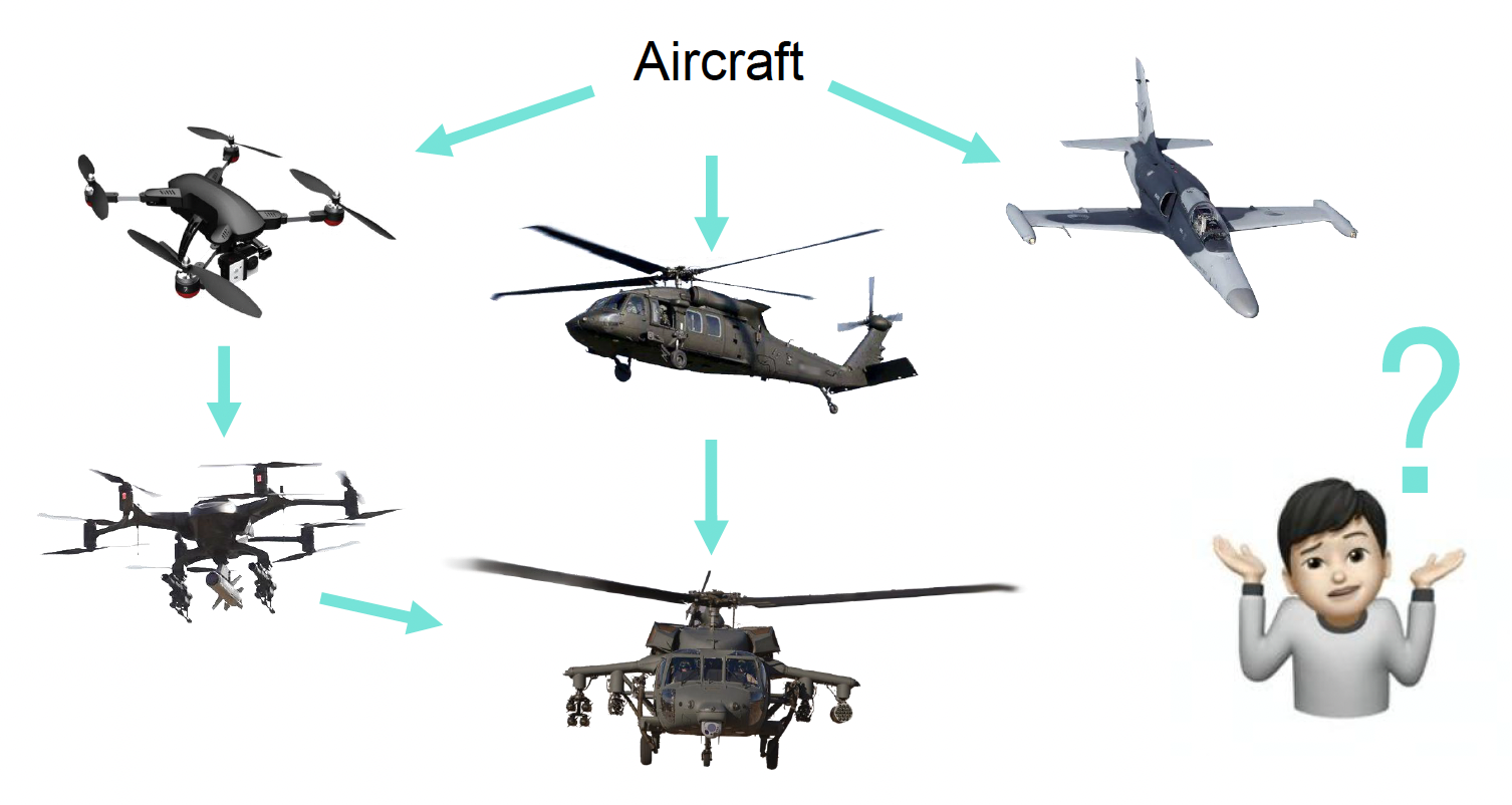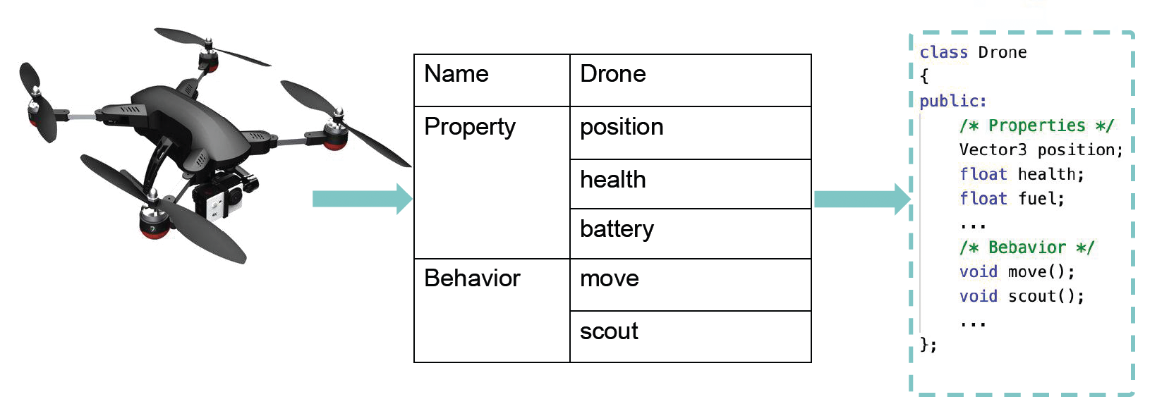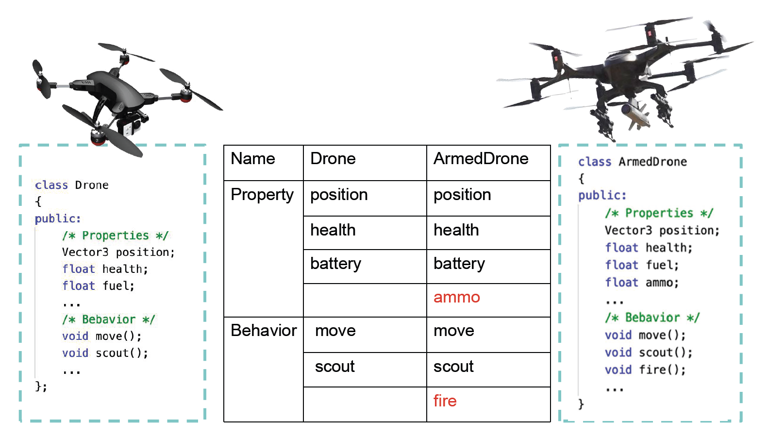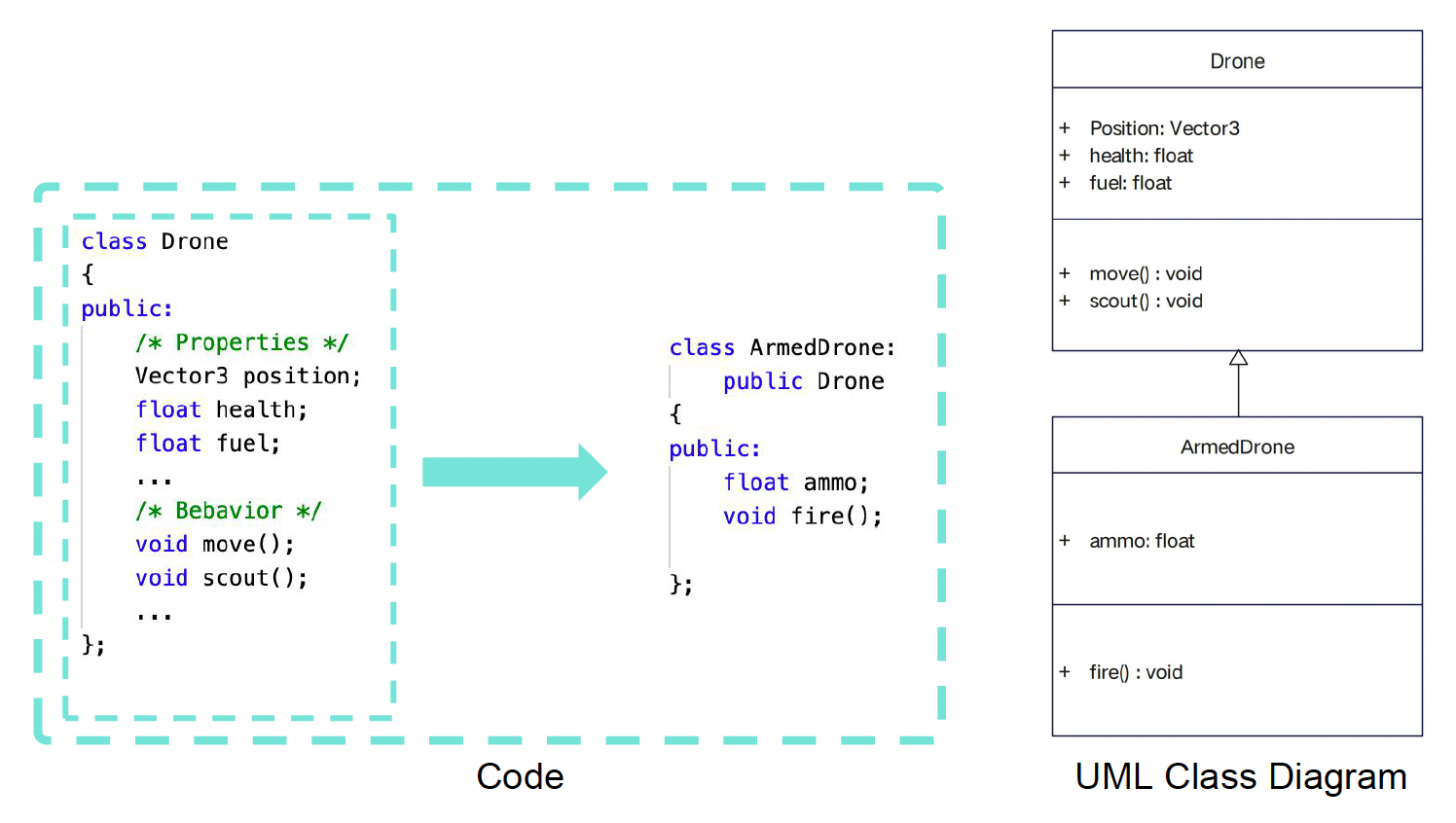 既然用到了 OOP 语言,那么不难想到我们不必从头开始编写武装无人机类的代码——可以先继承(inherit) 一般的无人机类,然后再增加额外的属性和行为。
