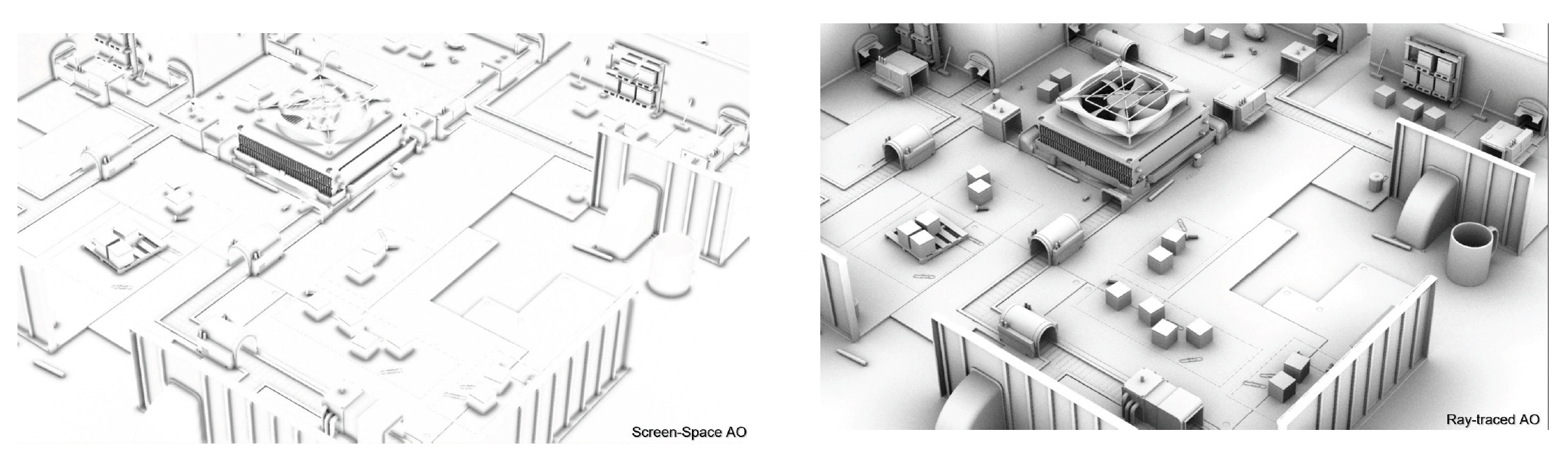 最近越来越火的一个方向是实时的光线追踪环境光遮蔽(ray-tracing ambient occlusion),就是用 RTT 硬件为每个屏幕像素点投射光线。