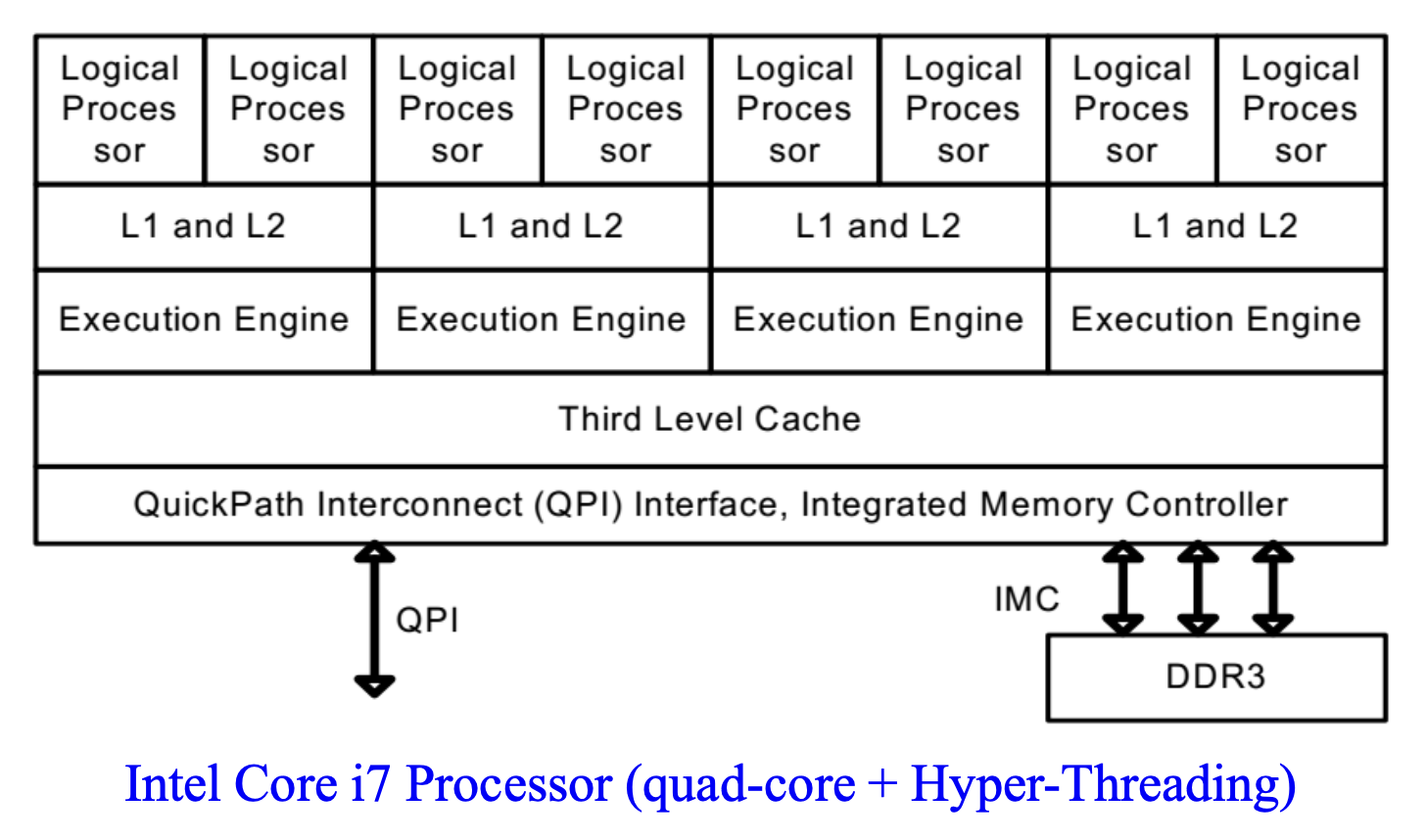 通过在处理器核心中利用共享执行资源,以单个物理包提供硬件多线程(hardware multi-threading) 能力