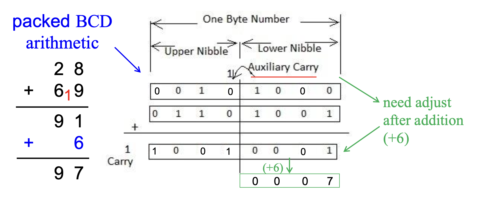 ) :辅助进位位,保存加法后的进位(半进位 (half-carry))或 BCD 数运算后结果中第 3 和第 4 位之间的借位