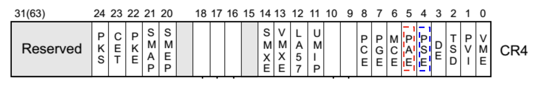 ) ,PAE 自动使用页大小位,因此忽略 CR4.PSE 的值,此时可用的大页大小为 2 MB - 如果物理地址扩展被禁用(CR4.PAE = 0)且 CR4.PSE = 1,则大物理页大小为 4 MB
