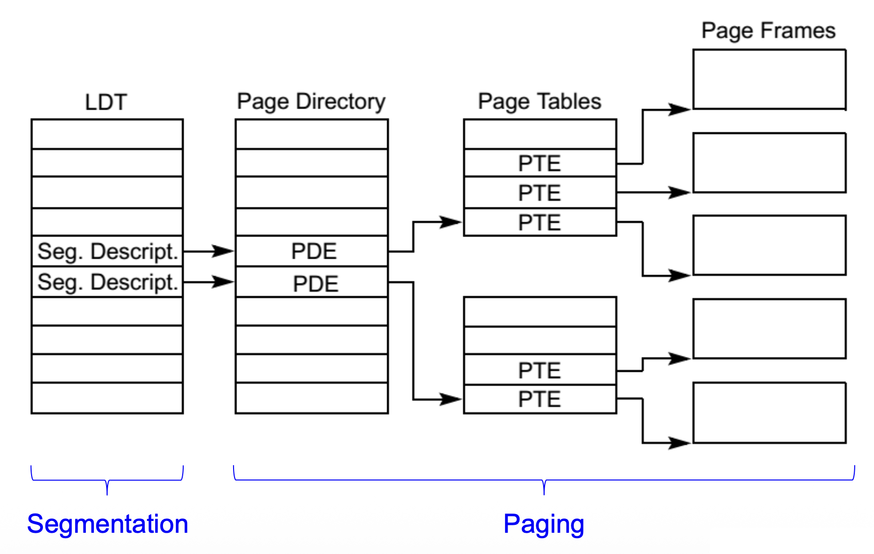 - 由于 PDE/PTE 格式相互兼容,OS 通常采用的一种方法是利用自引用表项或一个固定位置来存放所有分页结构
