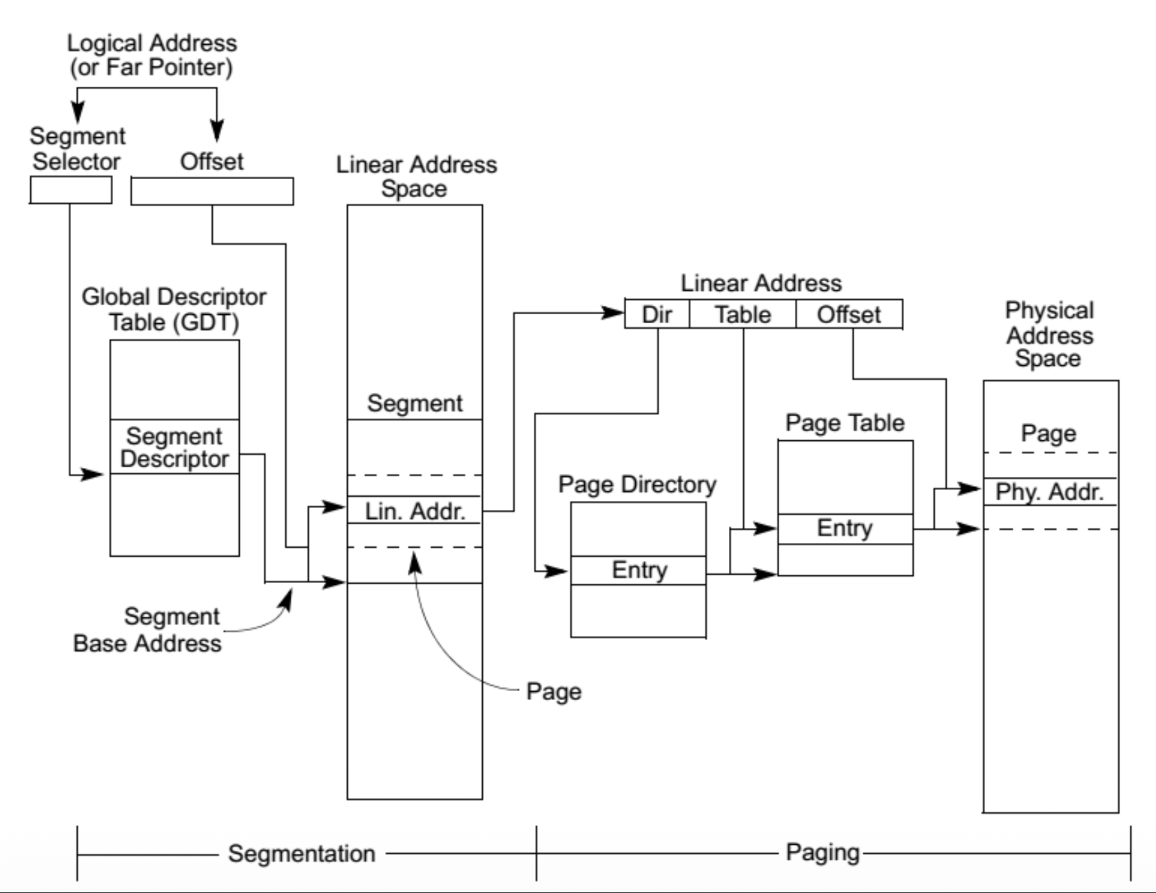 - 物理地址扩展(physical address extension, PAE):用于寻址大于 4GB 的物理地址空间(采用 2-9-9-12 模型)