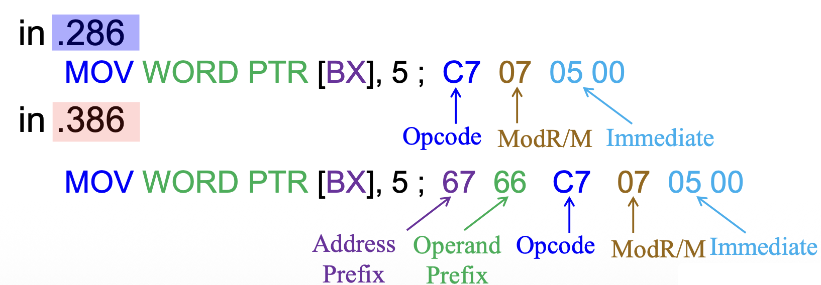 ) :默认地址和操作数大小为 16 位 - 32 位保护模式:默认地址和操作数大小为 32 位