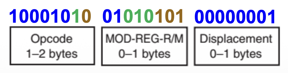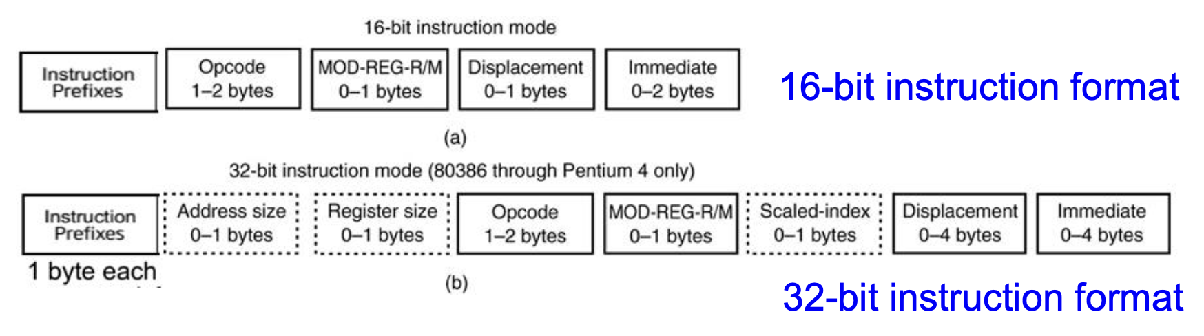 - 因为指令本质上是字节串,所以它们能在任何内存地址上起始