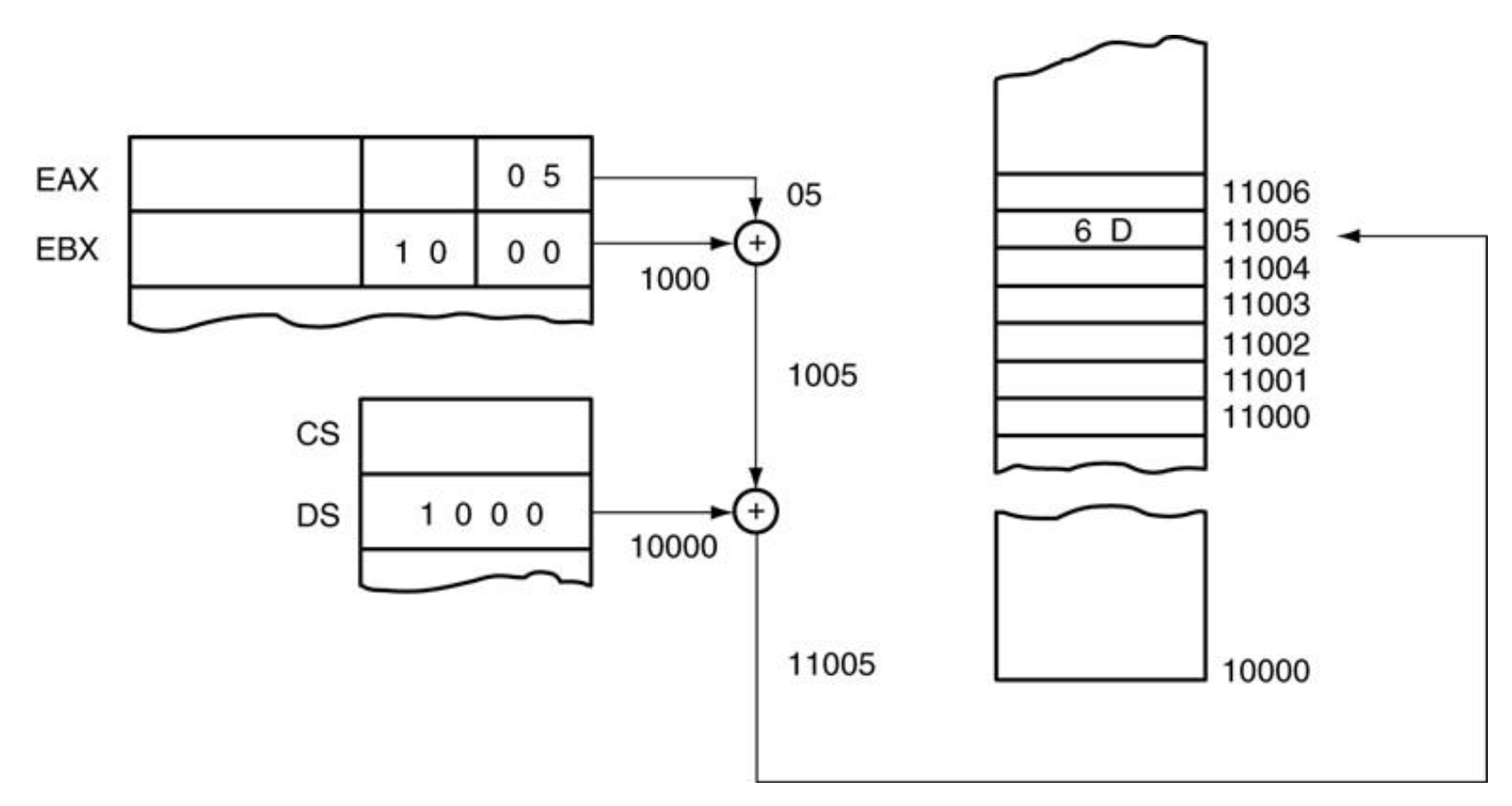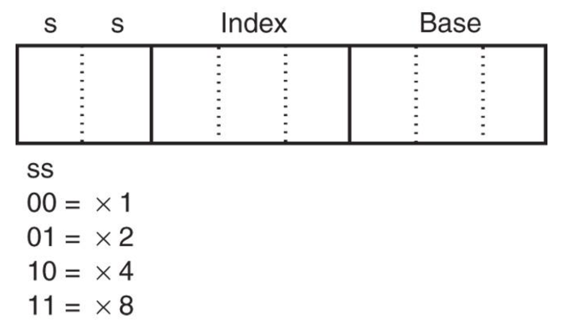 - 比例变址寻址还可以使用一个乘以比例因子的单个寄存器