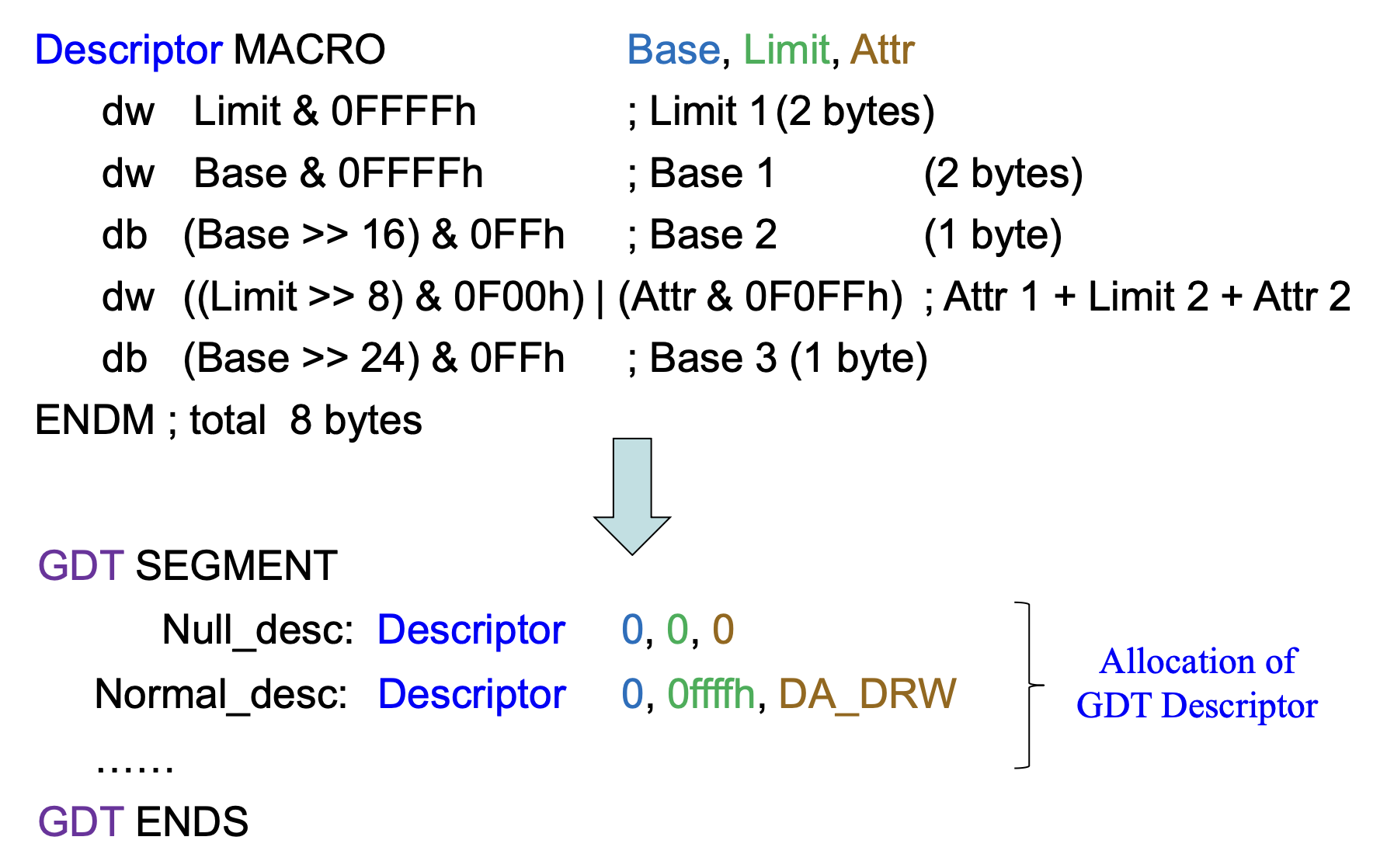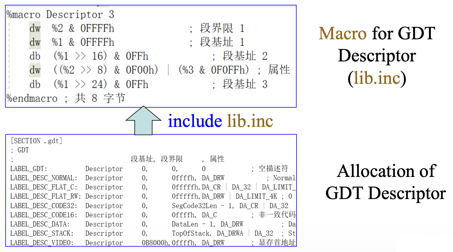 宏也可以在数据段中使用,比如为 GDT 描述符定义一个宏。